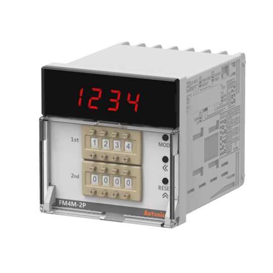 Bộ đếm series FM cho phép đặt trước hoặc chia 1 xung ngõ vào và chức năng nhân / chia. Series FM có tốc độ đếm 1 cps, 30 cps, 2 kcps và 5 kcps và chức năng hiển thị dấu thập phân (Dấu chấm thập phân cố định). Chế độ đếm xuôi, đếm ngược cho phép thiết bị đo chính xác và hiển thị cấu hình của các hệ thống khác nhau. Series FM bao gồm loại 4 chữ số và 6 chữ số với 2 kích thước DIN tiêu chuẩn W 72 x H 72.