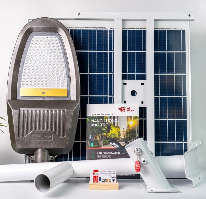 • Đầy đủ phụ kiện lắp đặt như đèn,tay đèn ,tấm pin giá đỡ tấm pin và ốc lắp đặt ,điều khiển từ xa …