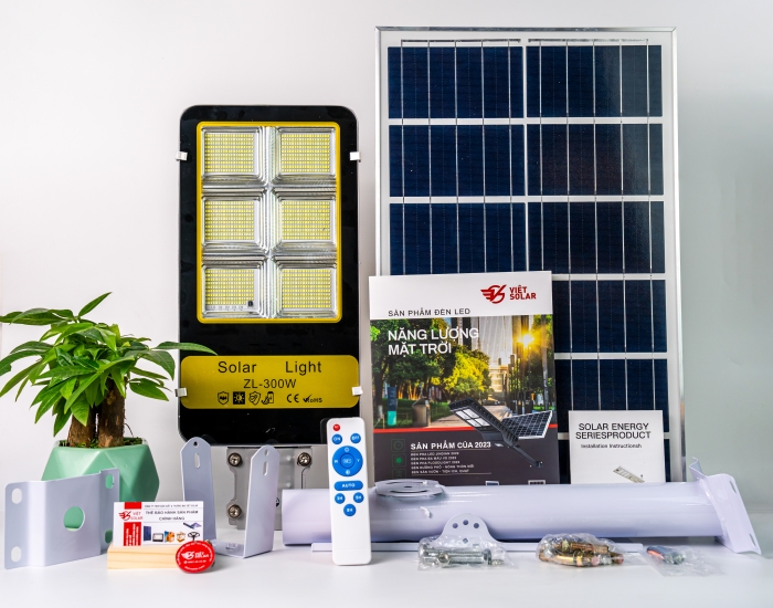 - Đầy đủ phụ kiện lắp đặt như đèn,tay đèn ,tấm pin giá đỡ tấm pin và ốc lắp đặt ,điều khiển từ xa …