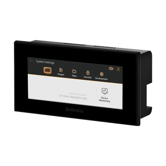 Màn hình điều khiển thuộc GP-A046 series là một thiết bị HMI bằng màn hình đồ họa TFT - LCD rộng 4,6 inch có khả năng hiển thị màu sắc tươi sáng và rõ nét, đồng thời có góc nhìn rộng. Đây là loại màn hình cảm ứng điện trở (analog touch) cho phép sắp xếp các thẻ một cách linh hoạt. Với chức năng ghi dữ liệu, thiết bị này hỗ trợ việc lưu trữ và sao lưu dữ liệu từ các thiết bị điều khiển khác nhau. GP-A057 series cho phép lắp đặt nằm ngang hoặc nằm dọc và hỗ trợ nhiều loại giao diện truyền thông khác nhau bao gồm USB Host/Device và Ethernet. Ngoài ra, chức năng Bypass cho phép thực hiện truyền thông mà không cần phải kết nối trực tiếp PLC với PC. Người dùng cũng có thể dễ dàng vận hành thiết bị và thiết kế bố cục màn hình thông qua phần mềm chuyên dụng atDesigner.